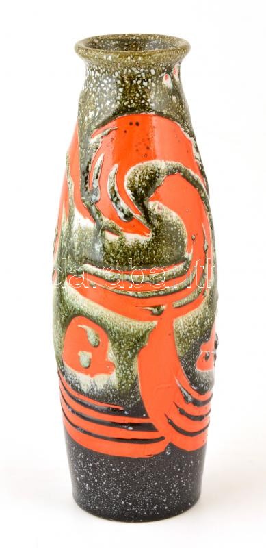 Beschreibung: Retró festett mázas váza, jelzés nélkül, alján apró lepattanással, m:31,5 cm