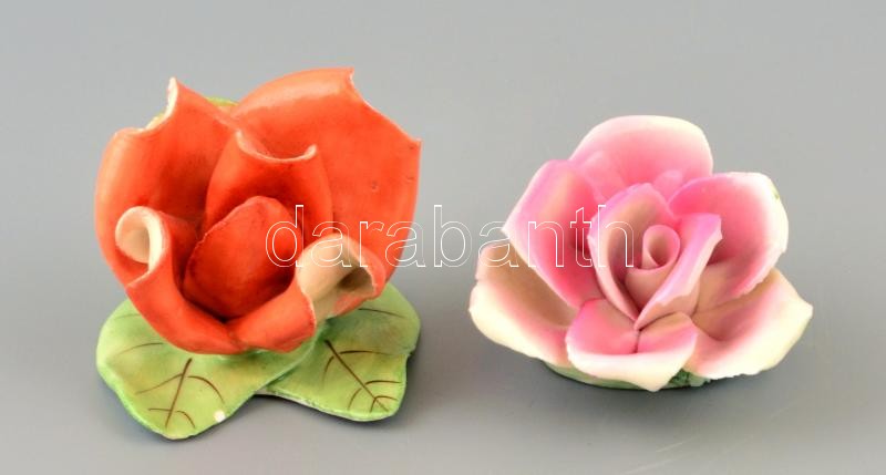 Beschreibung: 2 db Aquincum porcelán rózsa. Kézzel festett, jelzett, lepattanásokkal. kb 5 cm