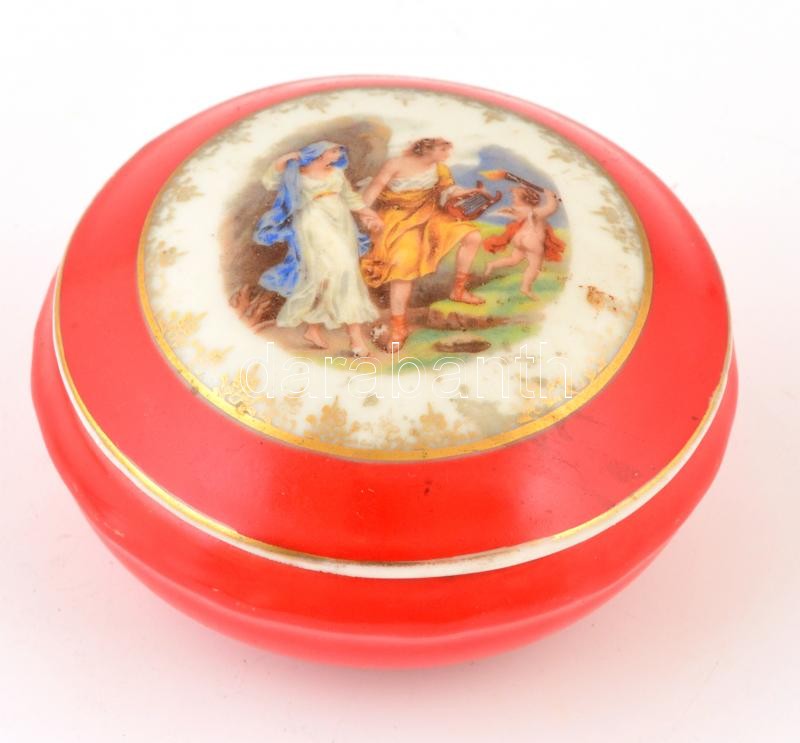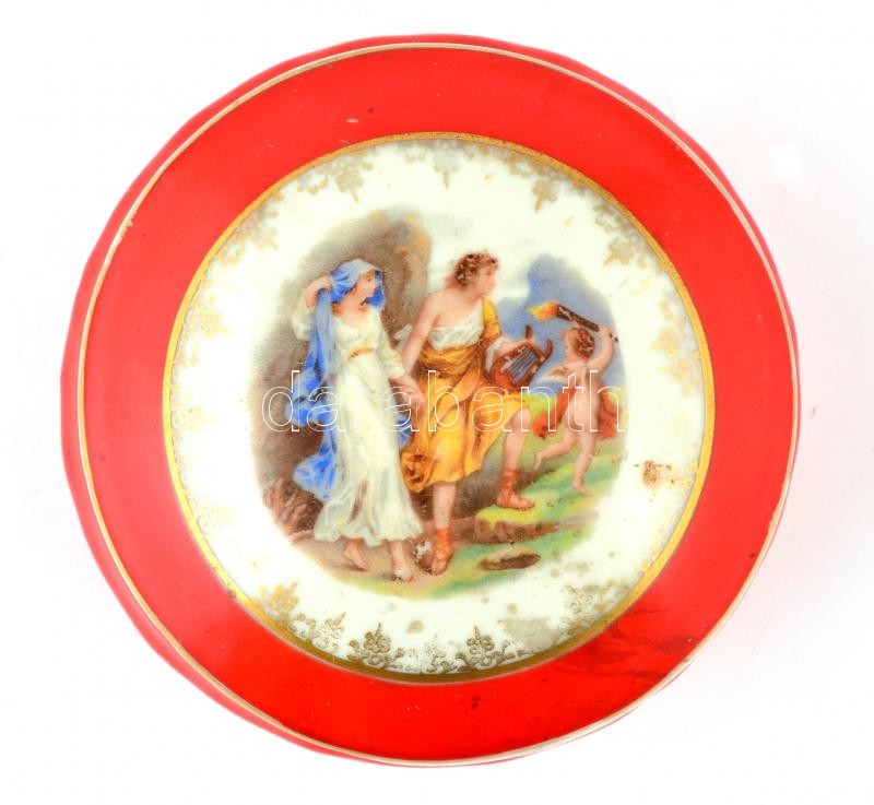 Drasche bonbonnier. Matricás, jelzett, kopásokkal d:9 cm. https://www.darabanth.com/de/359-Fernauktion/359.0/Porzellan-Keramik-Glass/Porzellan~500008/Drasche-bonbonnier-Matricas-jelzett-kopasokkal-d9-cm~II2062296