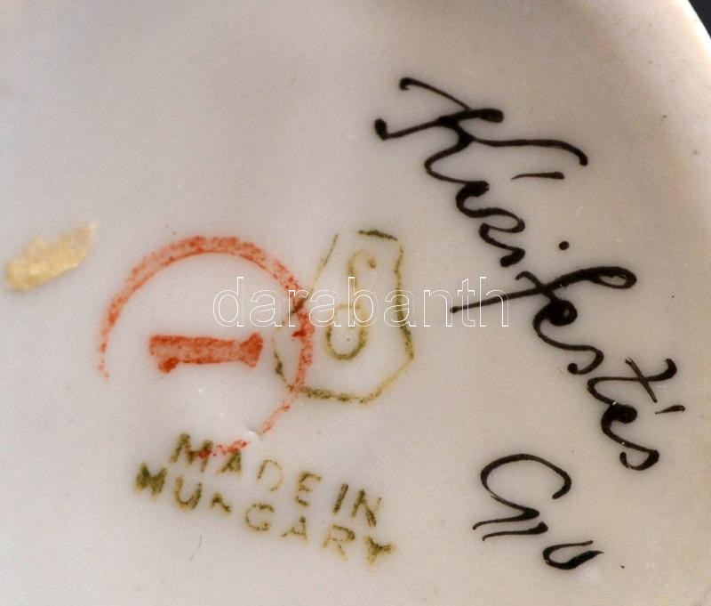Beschreibung: Drasche mutató nő, kézzel festett, jelzett, apró kopásnyomokkal, m: 18 cm