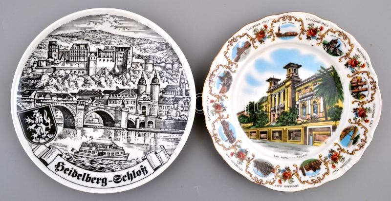 Beschreibung: Emlék tányér (2db) Heidelberg és San Remo, matricás, jelzett (Böckling, Winterlissg), apró kopásnyomokkal, d:19 cm (2×)