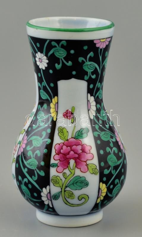 Beschreibung: Herendi Siang Noir mintás mini váza, kézzel festett, jelzett, apró kopásnyomokkal, m: 9 cm