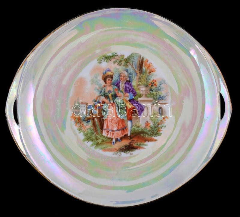 Beschreibung: Jelzett csehszlovák füles tál, matricás, kopásnyomokkal, 26×24 cm