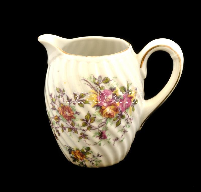 Beschreibung: Karlsbad Ausztria virágmintás porcelán kanna, matricás, jelzett, kopásnyomokkal, m: 10,5 cm