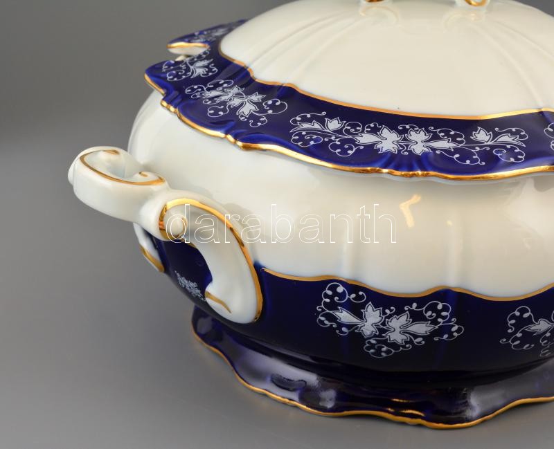 Beschreibung: Zsolnay Pompadour mintás étkészlet (24 db), matricás, jelzett (3. osztályú), apró kopásnyomokkal