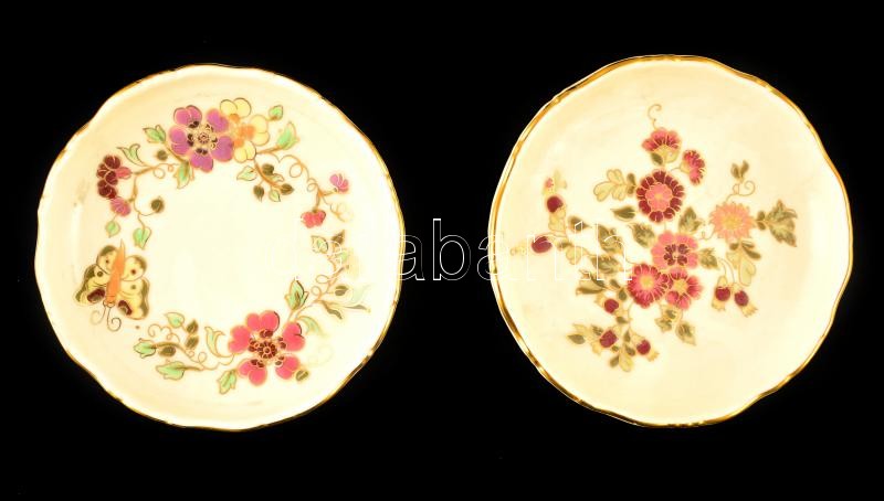 Beschreibung: Zsolnay virág mintás tálkák. 2 db jelzett, hibátlan, d: 12,5 cm