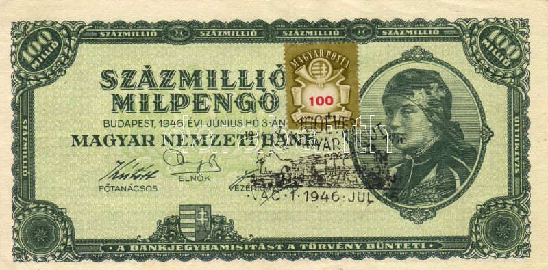 1946. 100.000.000Milpengő "100Milliárd" postabélyeggel + "100 éves a m... https://www.darabanth.com/de/36-Fernauktion/36.0/Numismatik/~73/1946-100000000Milpengo-100Milliard-postabelyeggel-plus-100-eves-a-magy-vasut-Vac1-1946jC3~II71111