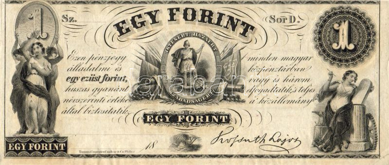 Philadelphia 18.. "Kossuth-bankó" emigrációs kiadás 1Ft T:I https://www.darabanth.com/de/36-Fernauktion/36.0/Numismatik/~73/Philadelphia-18-Kossuth-banko-emigracios-kiadas-1Ft-TI~II71749