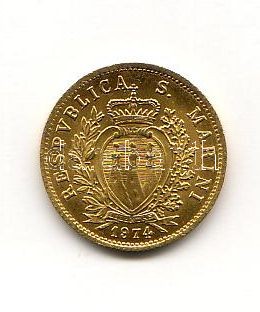 San Marino 1974. 1Sc arany 3g T:1 https://www.darabanth.com/de/36-Fernauktion/36.0/Numismatik/~75/San-Marino-1974-1Sc-arany-3g-T1~II70435