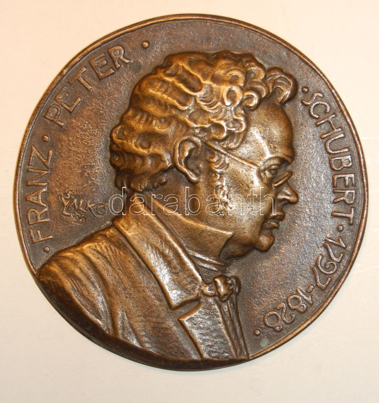 1955. "Schubert" nagyalakú bronz plakett, Szign:Valkó L. T:2 https://www.darabanth.com/de/36-Fernauktion/36.0/Numismatik/~84/1955-Schubert-nagyalaku-bronz-plakett-SzignValko-L-T2~II71714