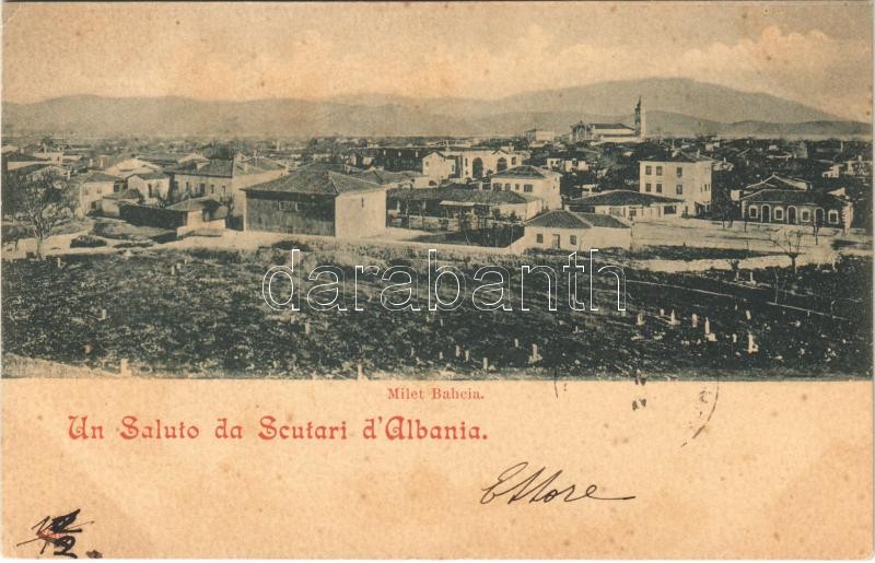 1901 Shkoder, Shkodra, Scutari, Skutari; Milet Bahcia https://www.darabanth.com/de/36-Gross-Auktion/36.1/Ansichtskarten/Albanien~15430/1901-Shkoder-Shkodra-Scutari-Skutari-Milet-Bahcia~II2476755