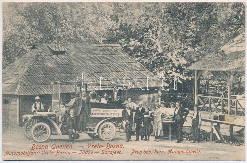 1909 Vrelo Bosne, Bosna Quellen; Automobilfahrt Vrelo-Bosna-Ilidze-Sarajevo. C.S. Nr. 363. Kunstverlag Cappon / Prvo bos.-herc. Autopoduceze / automobile trip