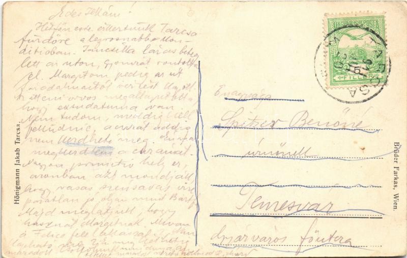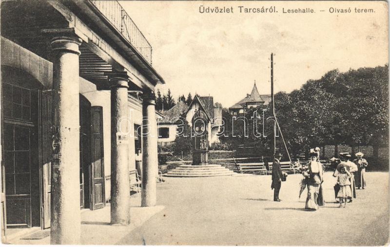 Beschreibung: 1911 Tarcsa, Tarcsafürdő, Bad Tatzmannsdorf; Lesehalle, Wetteranzeige / Olvasóterem, időjárásjelző. Hönigmann Jakab / reading hall, weather indicator (EK)