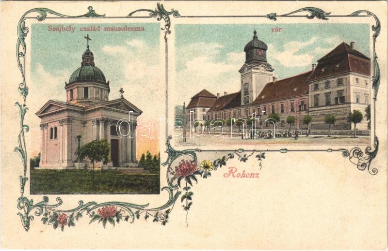 Beschreibung: Rohonc, Rechnitz, Rohunac; Szájbély család mauzóleuma, vár / mausolem, castle. Art Nouveau, floral, litho