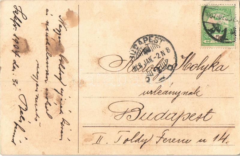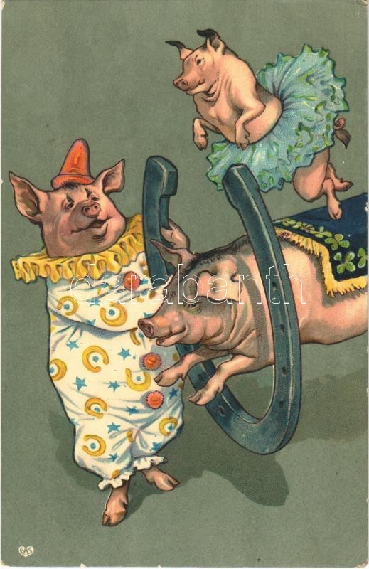 1907 Újévi üdvözlet malac akrobatákkal / New Year greeting with pig ac... https://www.darabanth.com/de/36-Gross-Auktion/36.1/Ansichtskarten/GruC39Fkarten-Feste~15510/1907-Ujevi-udvozlet-malac-akrobatakkal-New-Year-greeting-with-pig-acrobats-litho-fl~II2491206