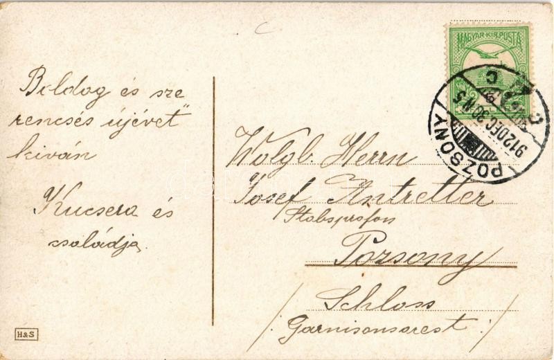 Beschreibung: 1912 Boldog új évet! Kéményseprő / New Year greeting with chimney sweeper. H&S litho (gyűrődések / creases)