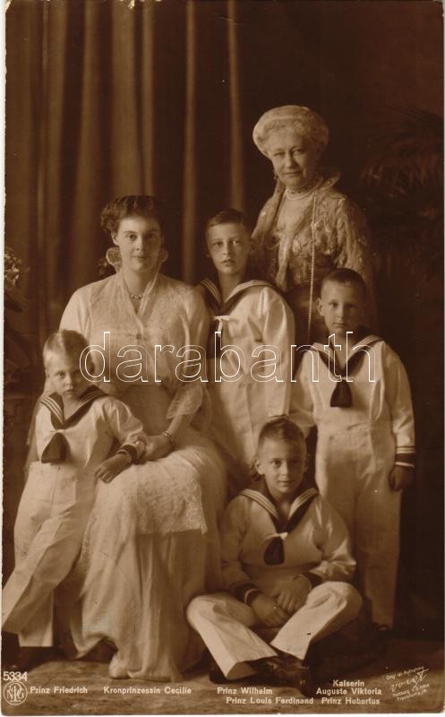 Kaiserin Auguste Viktoria, Prinz Friedrich, Kronprinzessin Cecilie, Prinz Wilhelm, Prinz Louis Ferdinand, Prinz Hubertus