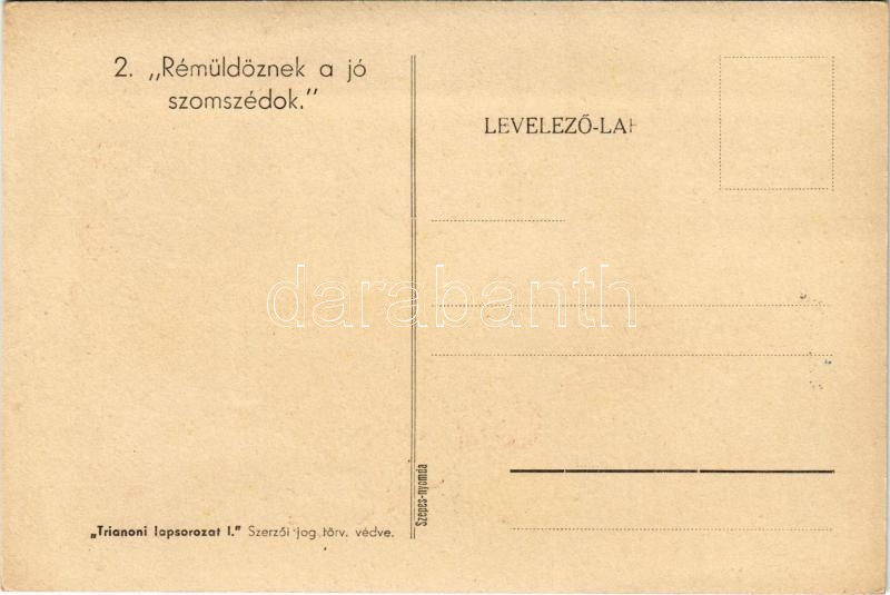 Giustizia per l'Ungheria! - Rémüldöznek a jó szomszédok. Szepes-nyomda Trianoni lapsorozat I. / "Justice for Hungary!" Hungarian irredenta propaganda art postcard s: Márton L. (EK)