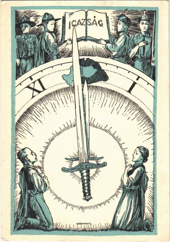 Beschreibung: Igazság. Irredenta propaganda lap cserkészekkel és leventékkel / Hungairan irredenta propaganda with boy scouts, Trianon map s: Márton L. (EB)