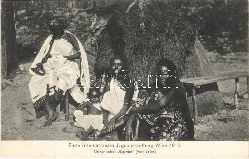 1910 Wien, Vienna, Bécs; Erste Internationale Jagdausstellung, Afrikanisches Jägerdorf (Aethiopien) / First International Hunting exhibition, African hunter village (Ethiopia)