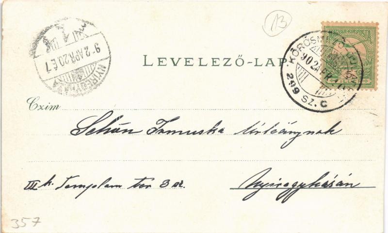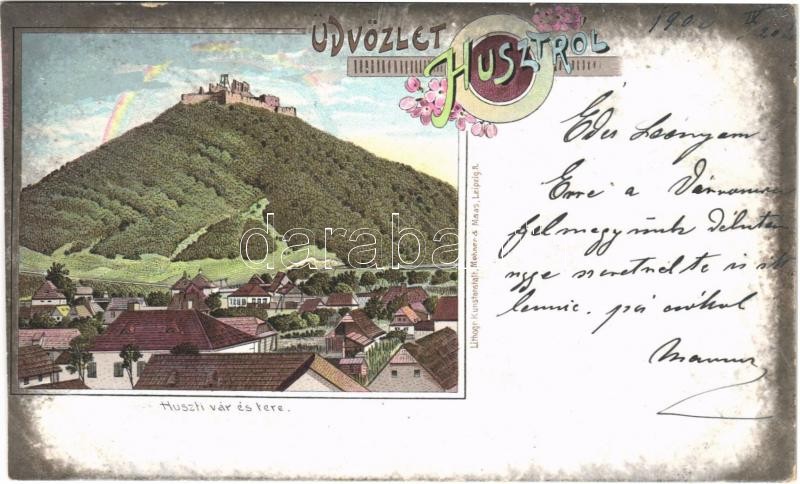 Beschreibung: 1902 Huszt, Chust; vár és tere. Mermelstein Fülöp kiadása 4127. / castle and square. Floral, litho (EK)