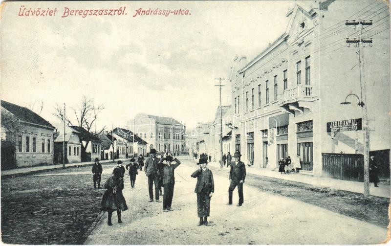 1910 Beregszász, Beregovo, Berehove; Andrássy utca, Jakab Antal ecet s... https://www.darabanth.com/de/36-Gross-Auktion/36.1/Ansichtskarten/Karpatenukraine~15428/1910-Beregszasz-Beregovo-Berehove-Andrassy-utca-Jakab-Antal-ecet-szesz-gyara-WL-Bp-6061-~II2491131