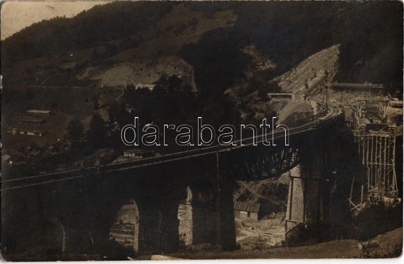 1915 Csorbadomb, Cserbin, Shcherbyn; viadukt, vasúti híd újjáépítése júliusban az Uzsoki-szorosban állványzattal. 1914-ben az oroszok felrobbantották / Karpathen des Uzsokerpasses. Gesprengte Brücke / reconstruction of railway bridge by Uzhok Pass (pereval Uzsockij) in July, viaduct was destroyed by the Russians in 1914. Original photo! (fl)
