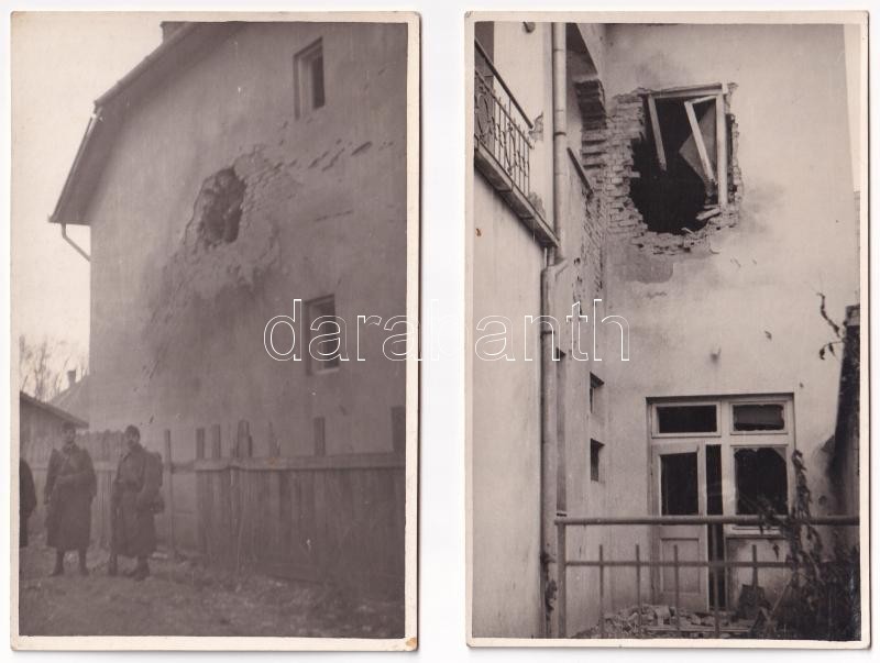 1941 Munkács, Mukacheve, Mukacevo; Szovjet légitámadás utáni romok. Arany és ezüst éremmel kitüntetve Foto Markovits / ruins after the Soviet air strike bombings - 5 db eredeti fotó / 5 original photos