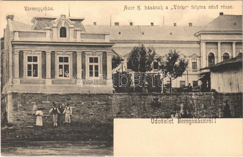 Beregszász, Beregovo, Berehove; Vármegyeház, Auer K. házának a "V... https://www.darabanth.com/de/36-Gross-Auktion/36.1/Ansichtskarten/Karpatenukraine~15428/Beregszasz-Beregovo-Berehove-Varmegyehaz-Auer-K-hazanak-a-Verke-folyora-nezo-resze-~II2491134