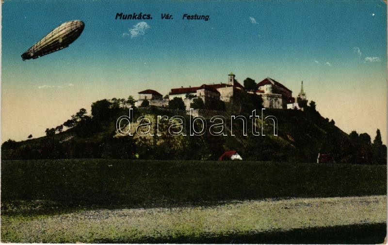 Munkács, Mukacheve, Mukacevo; Vár léghajóval / castle with airship https://www.darabanth.com/de/36-Gross-Auktion/36.1/Ansichtskarten/Karpatenukraine~15428/Munkacs-Mukacheve-Mukacevo-Var-leghajoval-castle-with-airship~II2487743