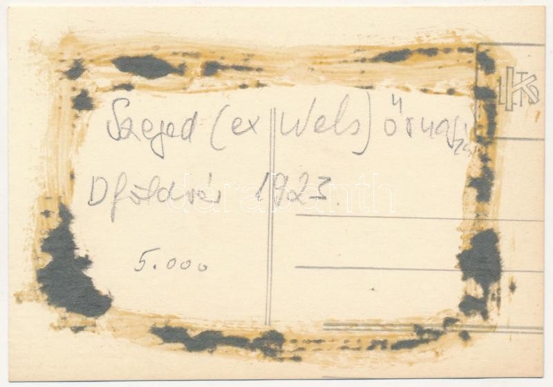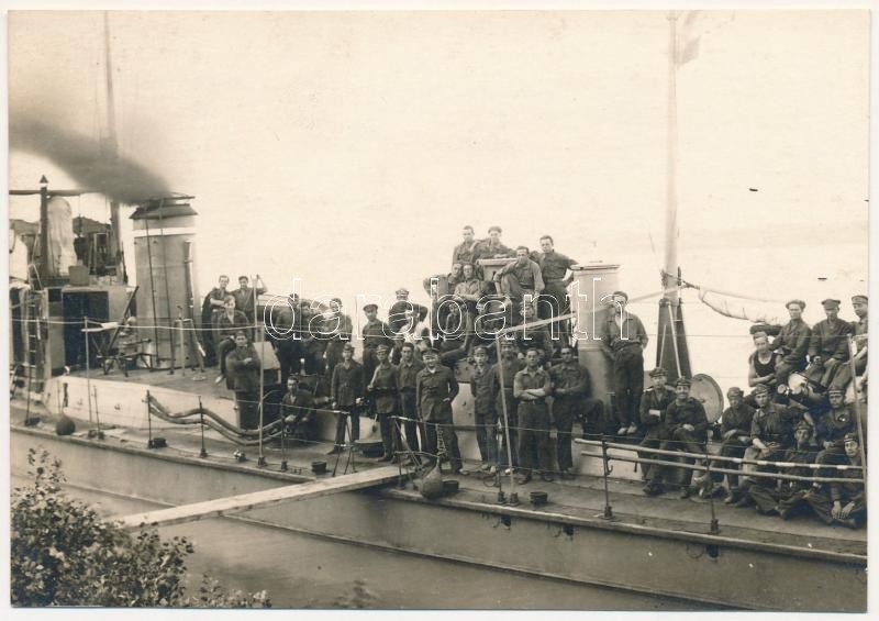1923 Dunaföldvár, Magyar Királyi Folyamőrség "SZEGED" (ex SMS Wels) őrnaszádja, matrózok / Hungarian Royal River Guard ship "SZEGED", mariners. photo (ragasztónyom / gluemark) (12 x 8,3 cm)