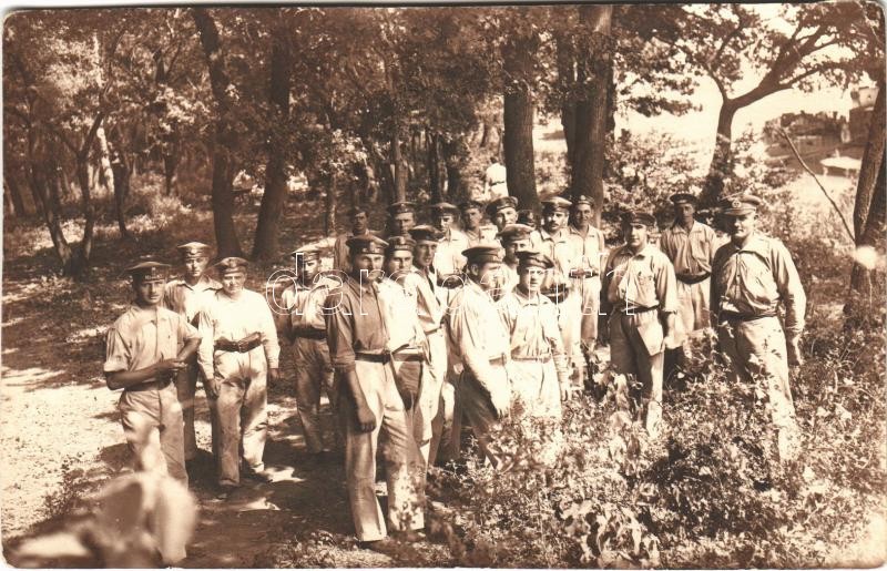 1931 Dunaújváros, Dunapentele, Sztálinváros; Magyar Királyi Folyamőrség "KECSKEMÉT" (ex SMS Visa) őrnaszádjának matrózai szárazföldön / Hungarian Royal River Guard mariners on mainland. photo (EK)