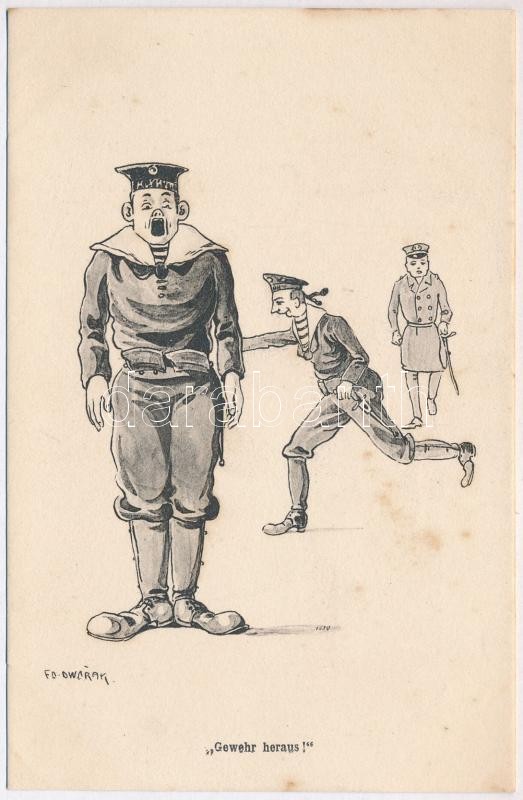 Gewehr heraus! K.u.K. Kriegsmarine Matrose / WWI Austro-Hungarian Navy... https://www.darabanth.com/de/36-Gross-Auktion/36.1/Ansichtskarten/Kriegsschiffe~15487/Gewehr-heraus-KuK-Kriegsmarine-Matrose-WWI-Austro-Hungarian-Navy-mariner-humour-art-postcard-~II2486624