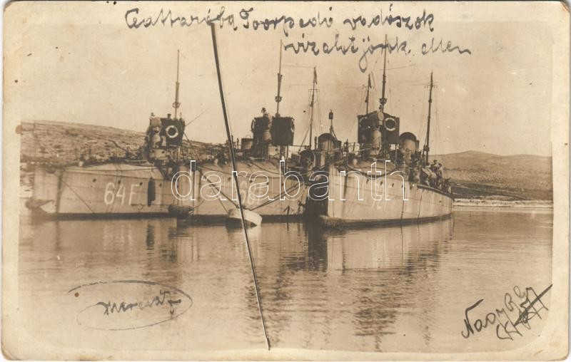 Kotor, Cattaro; Osztrák-magyar torpedónaszádok a kikötőben: SM Tb 64 F (ex Triton), SM Tb 72 F (ex Kormoran), SM Tb 68 F (ex Krake) / K.u.K. Kriegsmarine Torpedoboote / Austro-Hungarian Navy torpedo boats at the port. photo