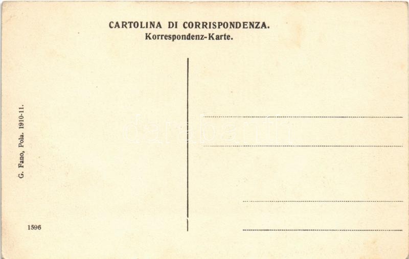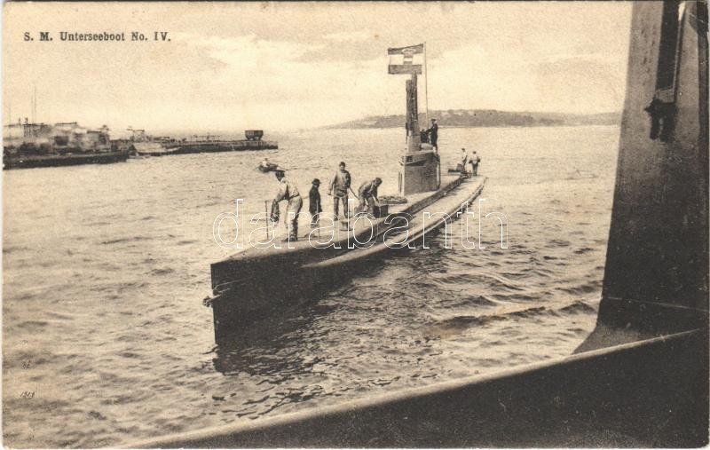 K.u.K. Kriegsmarine SM Unterseeboot No. IV. / SM U-4 osztrák-magyar tengeralattjáró matrózokkal a fedélzetén / Austro-Hungarian SM U-4 submarine with mariners. G. Fano Pola 1910-11. 1596. (EK)