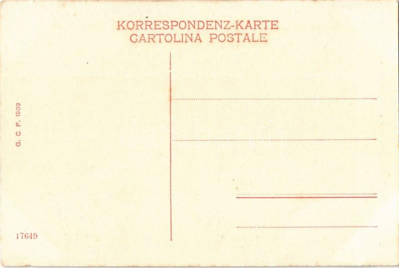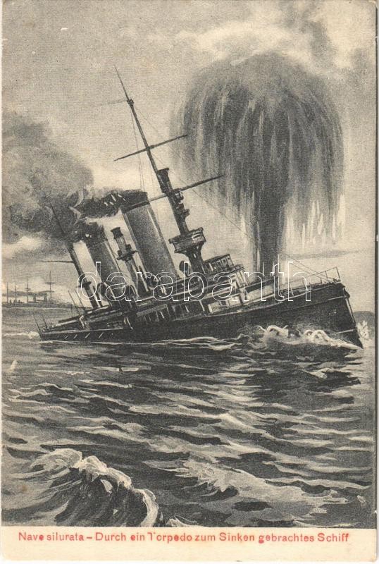 Nave silurata / Durch ein Torpedo zum Sinken gebrachtes Schiff. K.u.K. Kriegsmarine / Osztrák-magyar megtorpedózott hajó süllyedés közben / Austro-Hungarian Navy, sinking ship. G.C.P. 1909
