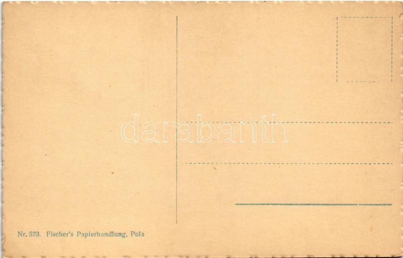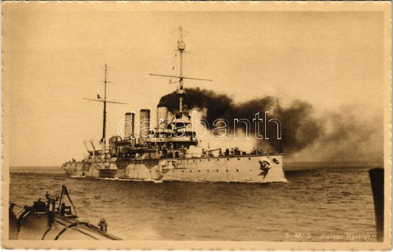 SMS Kaiser Karl VI az Osztrák-Magyar Haditengerészet páncélos cirkálója Polában / K.u.K. Kriegsmarine Panzerkreuzer. Fischer's Papierhandlung Nr. 523. / Austro-Hungarian Navy, SMS Kaiser Karl VI armored cruiser