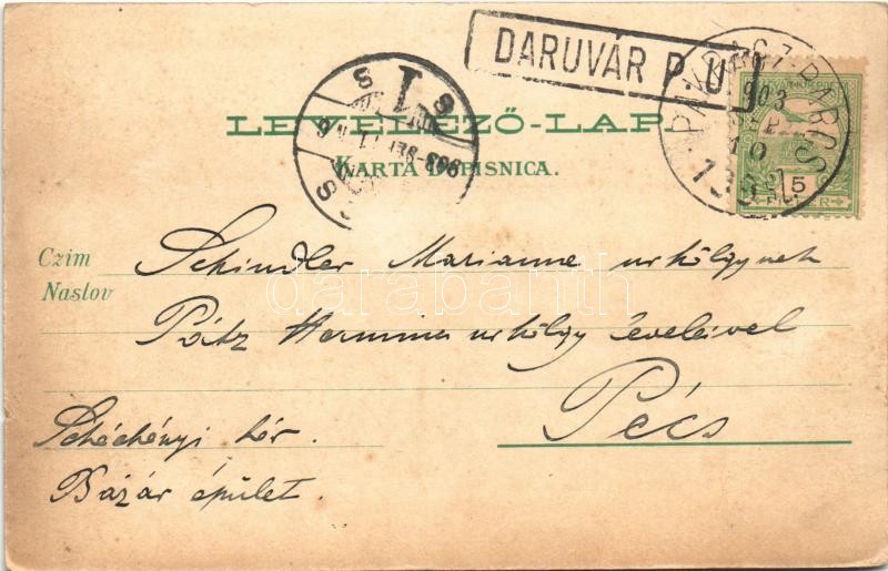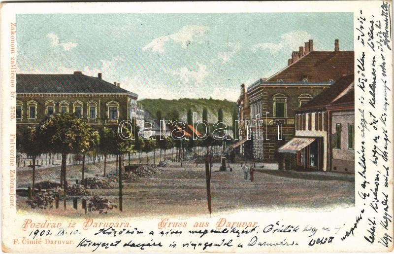 Beschreibung: 1903 Daruvar, tér / square. Zakonom zasliceno br. 5755. Palvorine Zabranjene. F. Cimic (apró szakadás / tiny tear)