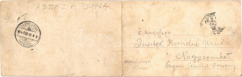1904 Abbazia, Opatija; Kikötő. Két részes kihajtható panorámalap / por... https://www.darabanth.com/de/36-Gross-Auktion/36.1/Ansichtskarten/Kroatien~15427/1904-Abbazia-Opatija-Kikoto-Ket-reszes-kihajthato-panoramalap-port-2-tiled-folding-panor~II2478439