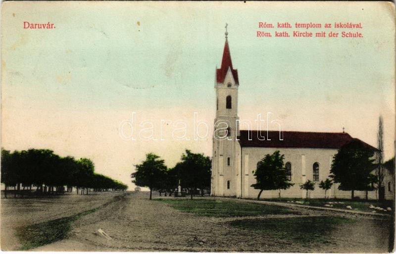 1908 Daruvár, Daruvar; Római katolikus templom és iskola / church and ... https://www.darabanth.com/de/36-Gross-Auktion/36.1/Ansichtskarten/Kroatien~15427/1908-Daruvar-Daruvar-Romai-katolikus-templom-es-iskola-church-and-school-EK~II2470907