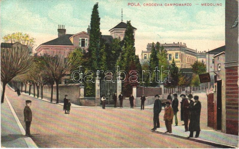 1910 Pola, Pula; Crocevia Campomarzo, Medolino / Medulin / utca / stre... https://www.darabanth.com/de/36-Gross-Auktion/36.1/Ansichtskarten/Kroatien~15427/1910-Pola-Pula-Crocevia-Campomarzo-Medolino-Medulin-utca-street~II2476111