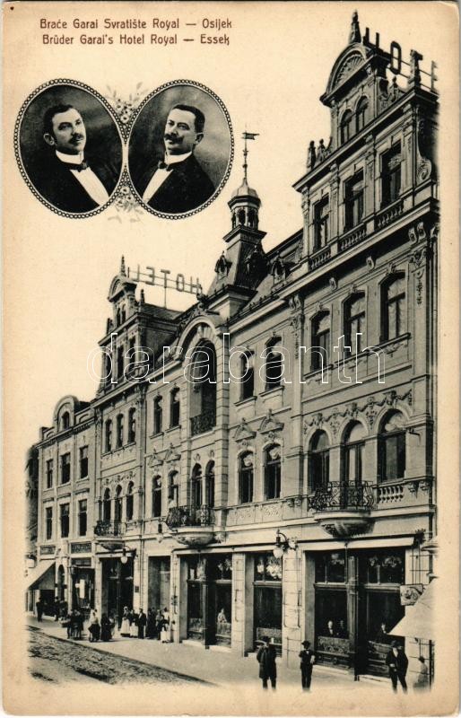 Beschreibung: Eszék, Essegg, Osijek; Brüder Garai's Hotel Royal / szálloda a tulajdonosok arcképével / hotel with the portraits of the owners