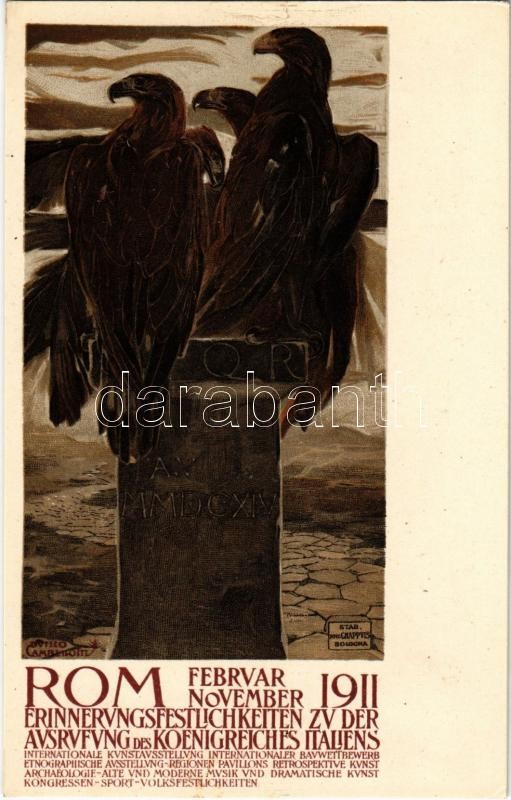 1911 Rom, Erinnerungsfestlichkeiten zu der Ausrufung des Königreiches Italiens / Commemorial Festivities of the Proclamation of the Kingdom of Italy in Rome. Chappuis' German language edition litho s: Cambellotti Duilio (gluemark)