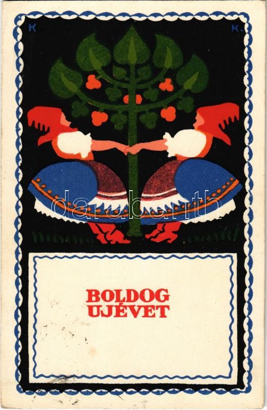 Beschreibung: Boldog Újévet! Rigler József Ede kiadása (R. J. E.) / Hungarian New Year greeting art postcard. s: K. K.