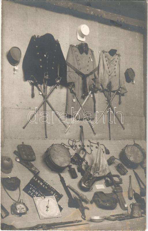 1917 Budapest XIII. Szent Margitsziget, József főherczeg vezérezredes hadi kiállítása, Capitan Aleman Nic. teljes felszerelése és öltözete. photo + So. Stpl