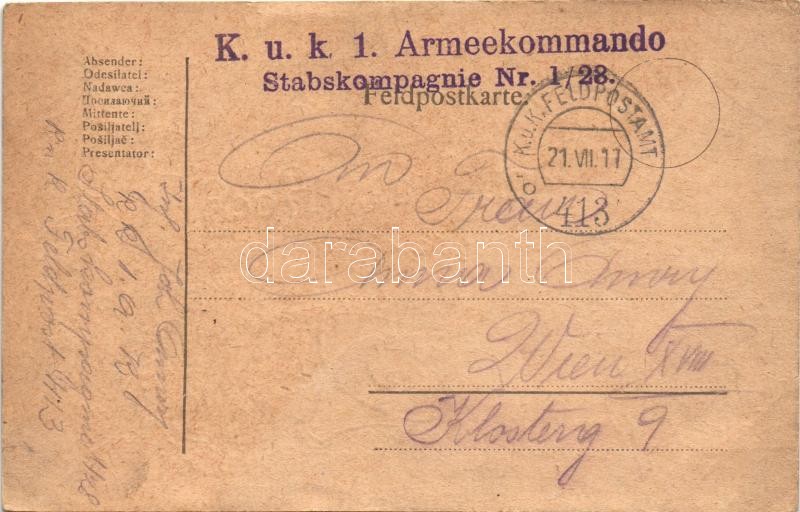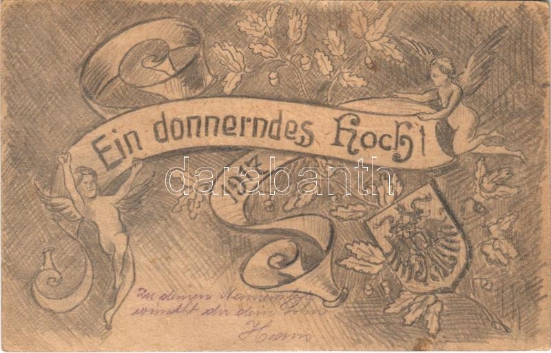 1917 Ein donnerndes Hoch! Feldpostkarte / Első világháborús katonai tábori posta, üdvözlet. Kézzel rajzolt / WWI k.u.k. (Austro-Hungarian) military field post, hand-drawn greeting (EK)
