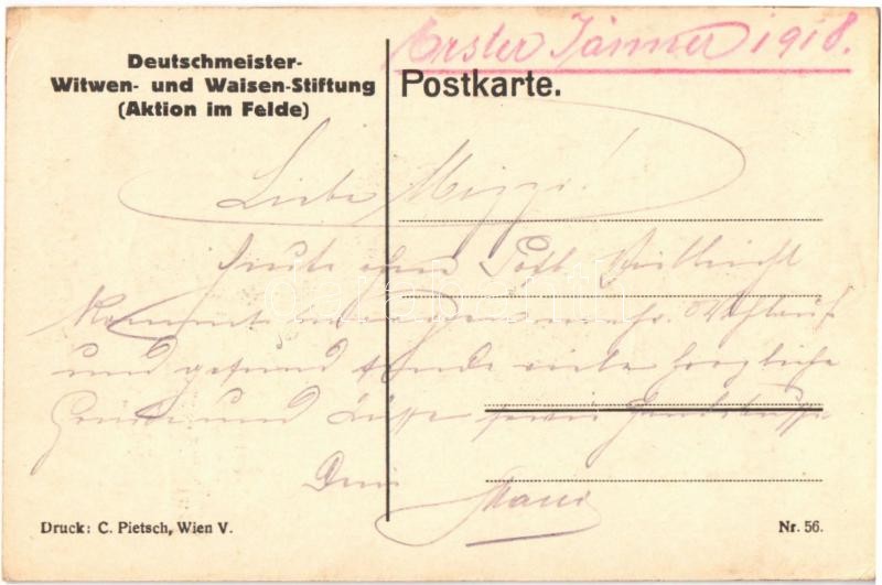 1918 Karriere Im Gesicherten Halt / WWI Austro-Hungarian K.u.K. military art postcard, humour, support fund. Deutschmeister Witwen- und Waisen-Stiftung (Aktion im Felde) Nr. 56. s: Rud. Kristen