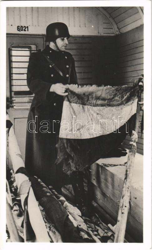 Beschreibung: 1941 Az 1848-49-es szabadságharci zászlók ünnepélyes hazahozatala Oroszországból. A zászlók átvizsgálása útközben a vonaton