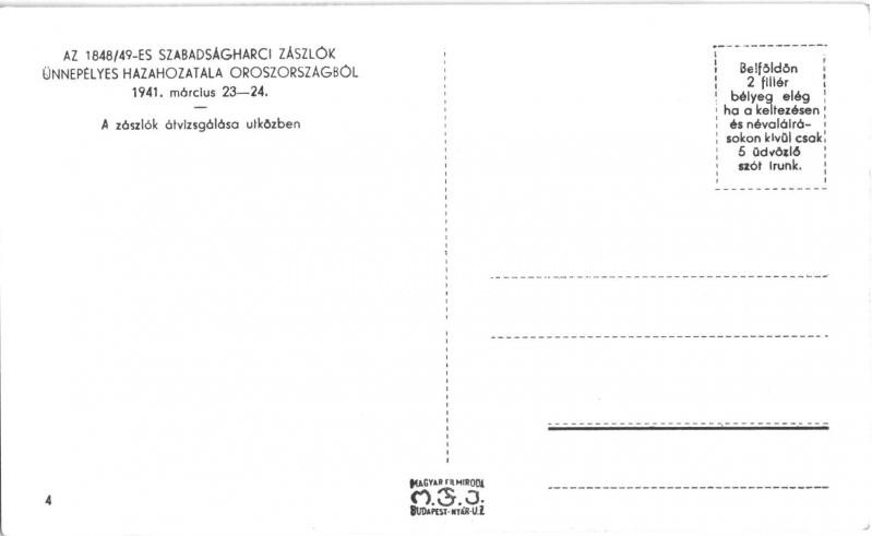 1941 Az 1848-49-es szabadságharci zászlók ünnepélyes hazahozatala Oros... https://www.darabanth.com/de/36-Gross-Auktion/36.1/Ansichtskarten/Militaria~15493/1941-Az-1848-49-es-szabadsagharci-zaszlok-unnepelyes-hazahozatala-Oroszorszagbol-A-zaszlok~II2477453