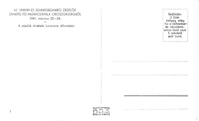 1941 Lavochne, Lavoczne; az 1848-49-es szabadságharci zászlók ünnepélyes hazahozatala Oroszországból, zászlók átvétele a vasútállomáson / Russia returns the flags of the 1849-49 Hungarian war of independence, ceremony at the railway station
